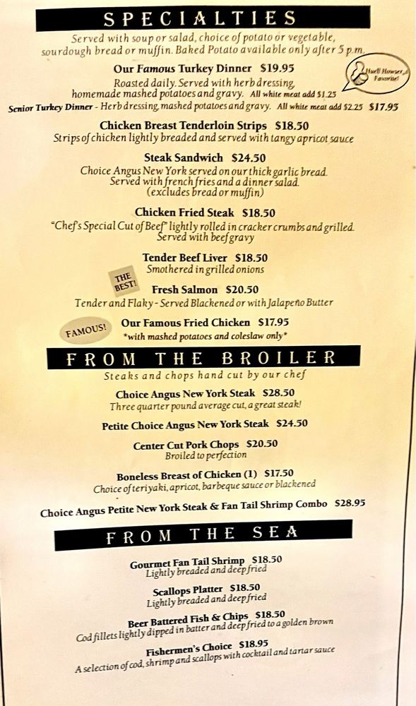 Roasted daily and served with herb dressing, mashed potatoes and gravy. Senior Special.